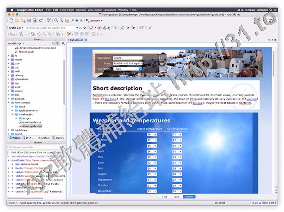 Oxygen XML editor是一款基於Java的XML編輯器,支持XML, XSL, TXT, XSD, DTD文檔,能自