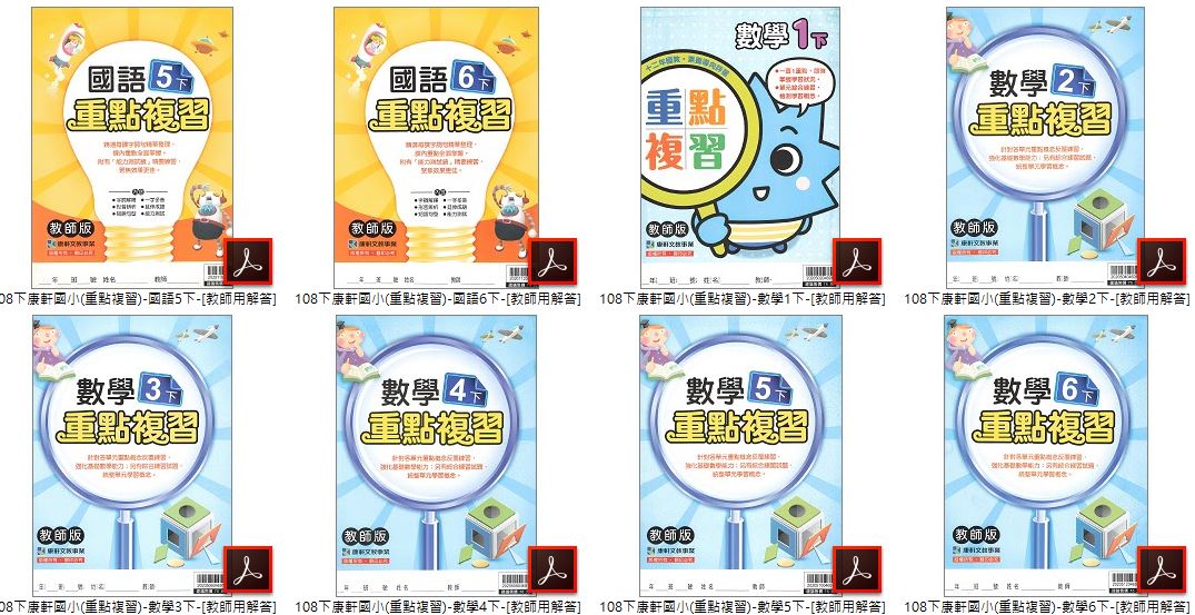 • 108學年上學期 國小 1-6年級 國小輔助教本 南一版-國小隨堂演練+康軒版-國小重點複習+翰林版-國小課堂演練 全科目+全版本 合輯版 DVD版