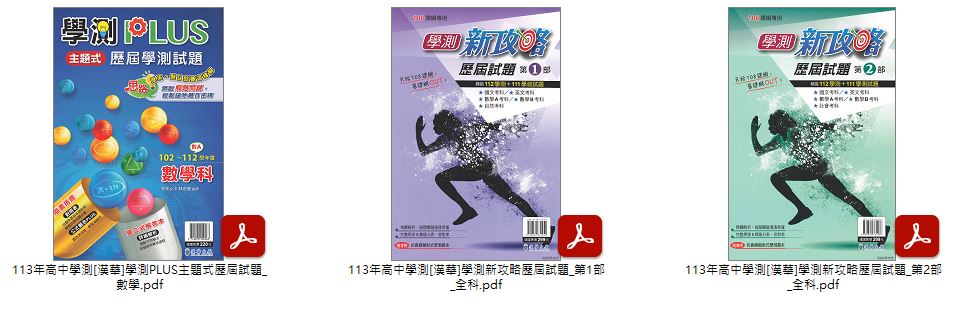 113年高中學測[常春藤]近五年英文學測指考試題詳解+ [漢華]學測PLUS主題式歷屆試題 數學 + 學測新攻略歷屆試題 第1-2部 講義光碟