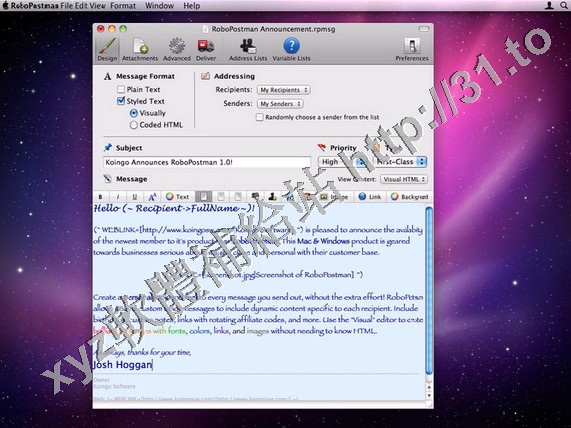 Koingo Software RoboPostman v1.1.7 MacOSX 英文正式版(郵件編輯軟體)