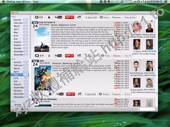 • Coming soon v1.1 MacOSX 英文正式版(獲取對即將上映的電影發行的最新資訊軟體)